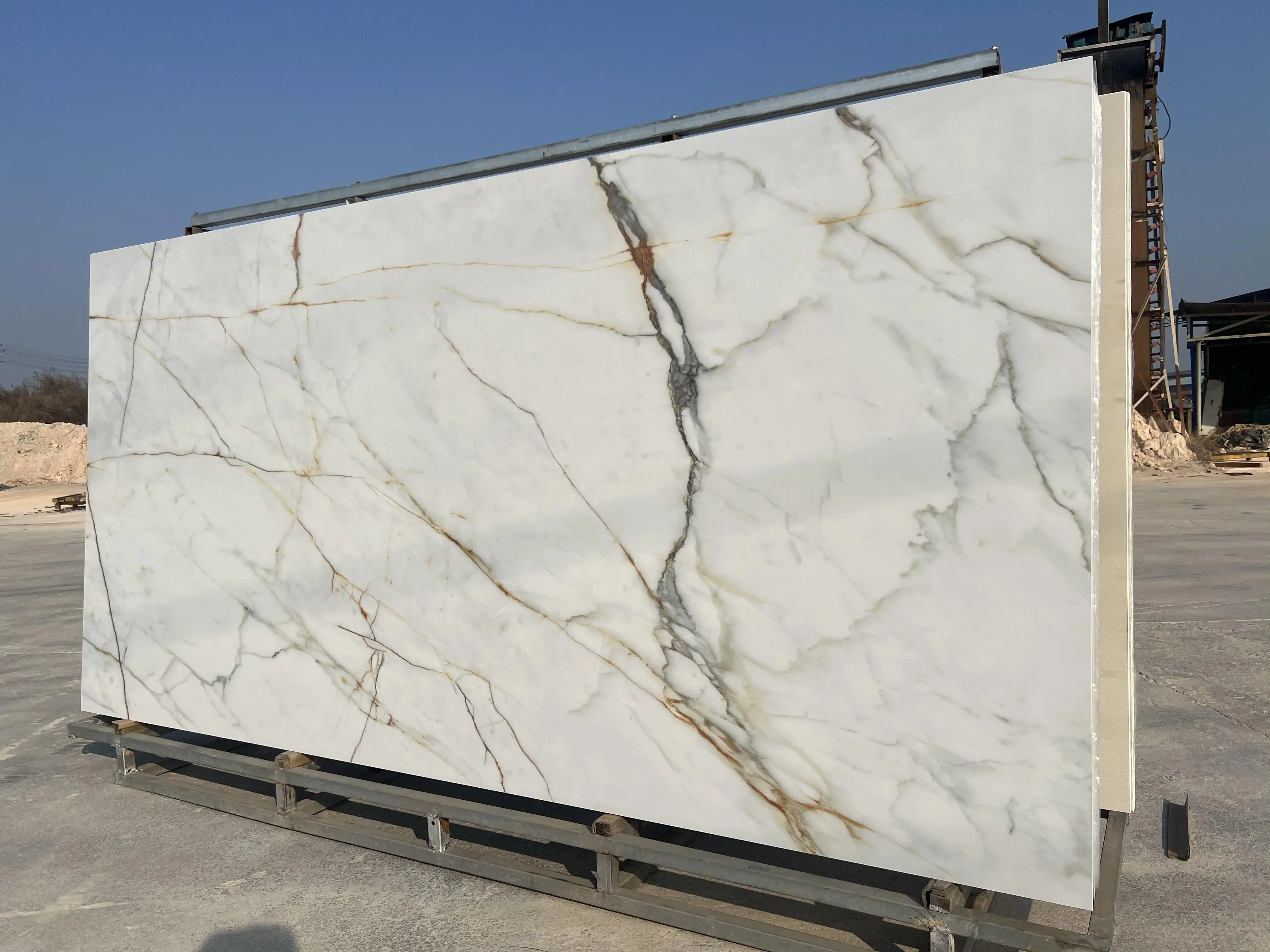 4.Warum sollten Sie von uns kaufen anstatt von anderen Lieferanten? (1) Hochwertige Produkte: Sinterstein wird mit Top-Ausrüstung wie italienischer Sakmi-Anlagen und Dual-System-Tintenstrahldrucker hergestellt, wodurch die höchste Produktqualität und -ausbeute gewährleistet wird. (2) Professionelles Verkaufsteam: Unsere Verkäufer bieten den besten Service mit ihrer Fachkenntnis und Erfahrung. (3) Flexible Anpassung: Bei einer Stückbestellung können Sie Dokumente bereitstellen oder wir helfen Ihnen bei der Bereitstellung von Dokumenten zur Farbanpassung. (4) Wir haben über 400 Farben in unseren 1600*3200 Spezifikationen, und die Prozesskategorien umfassen glänzende Oberfläche, mattierte Oberfläche, feine Gravur, Goldsammet und Gegenkörper, insgesamt 5 Prozesse.